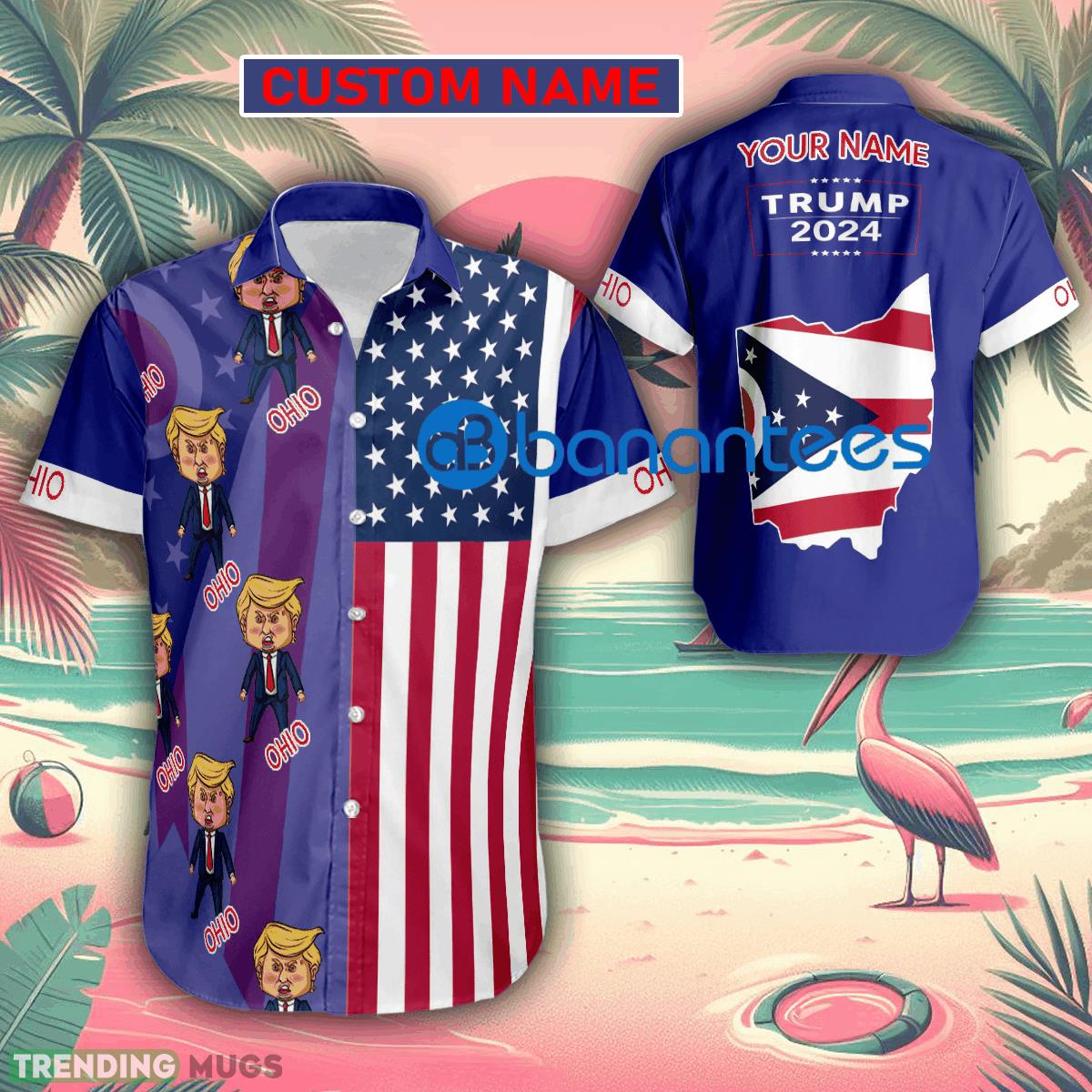 Custom Name Trump Angry Ohio Hawaiian Shirt Baby Trump Pointing USA Flag Gift For Fans Trump Votes Details: