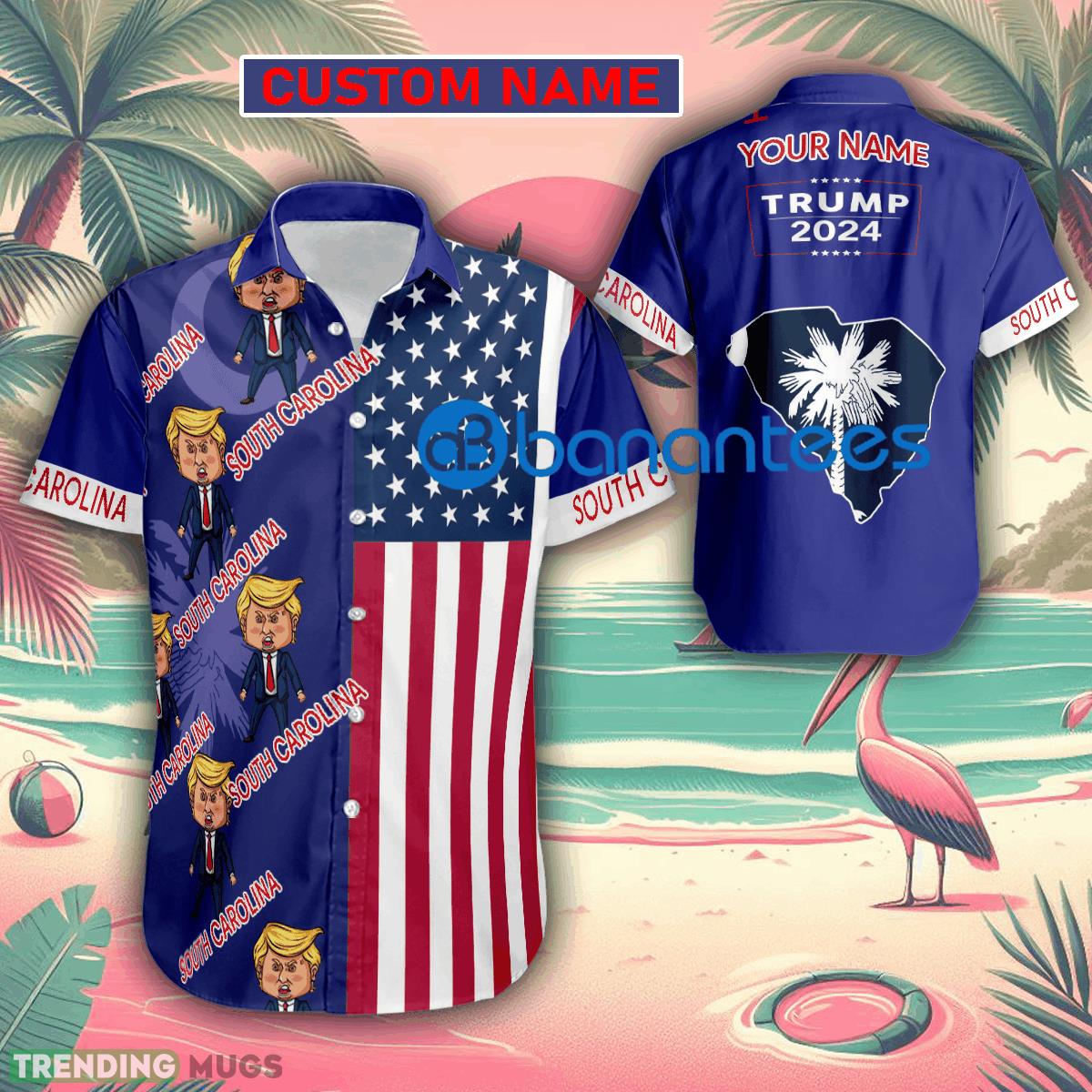 Custom Name Trump Angry South Carolina Hawaiian Shirt Baby Trump Pointing USA Flag Gift For Fans Trump Votes Details: