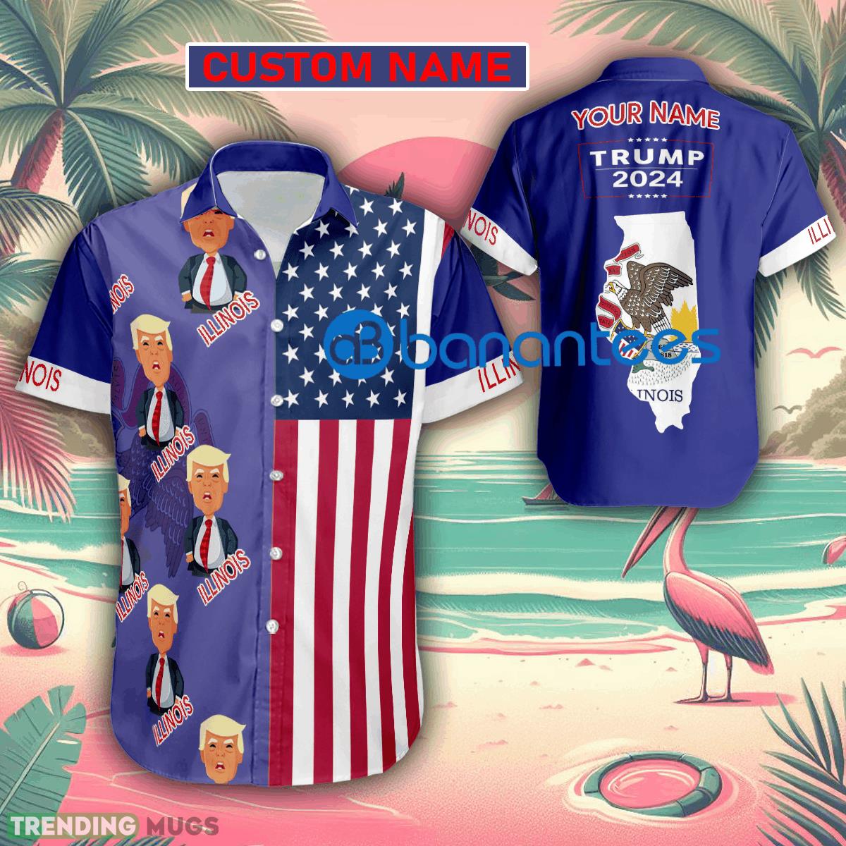 Custom Name Trump Big Belly Illinois Hawaiian Shirt Baby Trump Pointing USA Flag Gift For Fans Trump Votes Details: