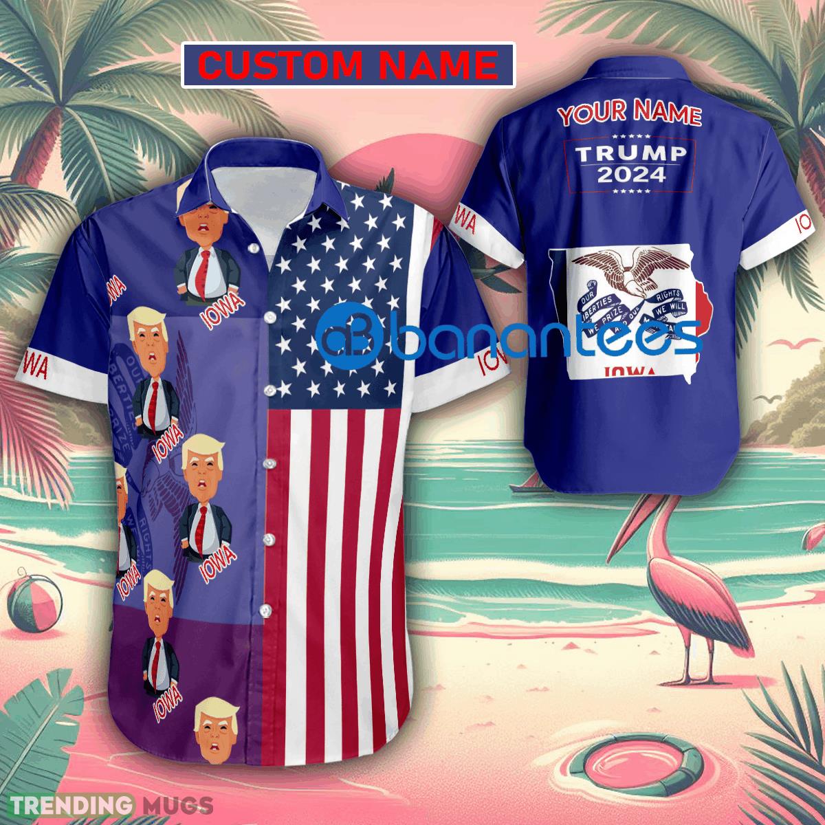 Don’t miss out on this incredible opportunity to own a unique piece of Trump memorabilia. Order your Custom Name Trump Big Belly Iowa Hawaiian Shirt today and let your love for Trump shine bright!