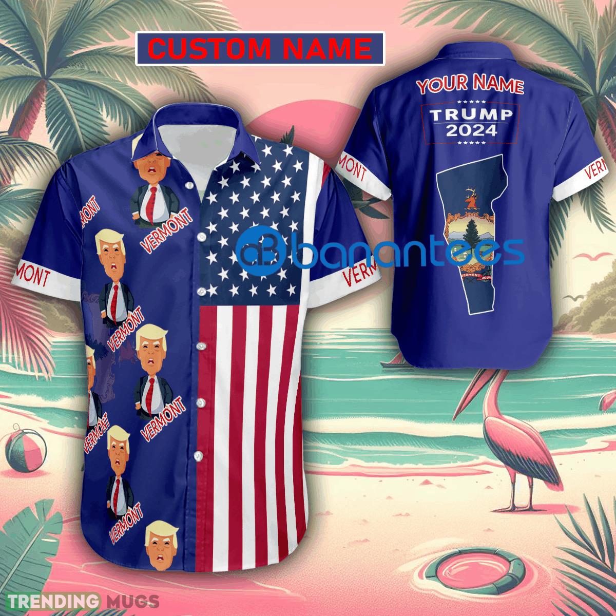 So why wait? Embrace your passion for Trump, show off your American pride, and make a statement with our Custom Name Trump Big Belly Vermont Hawaiian Shirt today. Get yours now and let the world know where your vote lies!