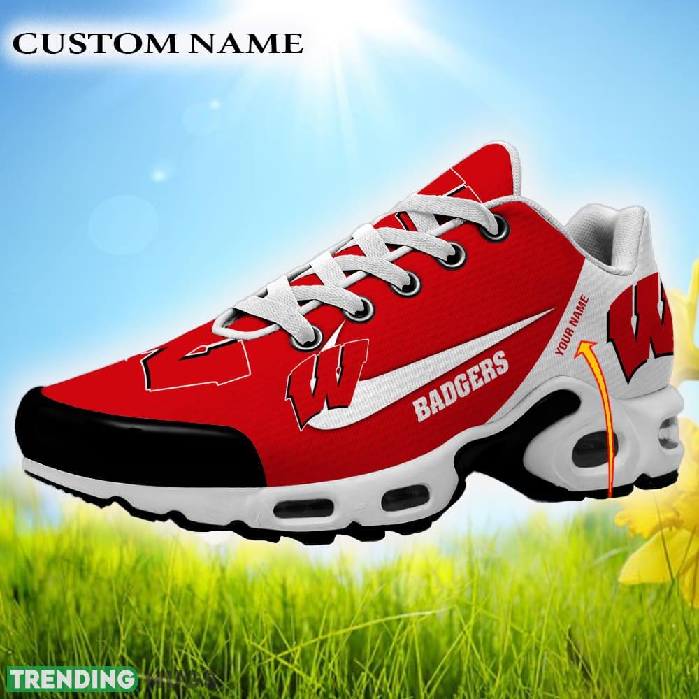 Some of the Custom Name Wisconsin Badgers NCAA Air Cushion Sports Shoes Island New Sneakers For Men Women Gift photos