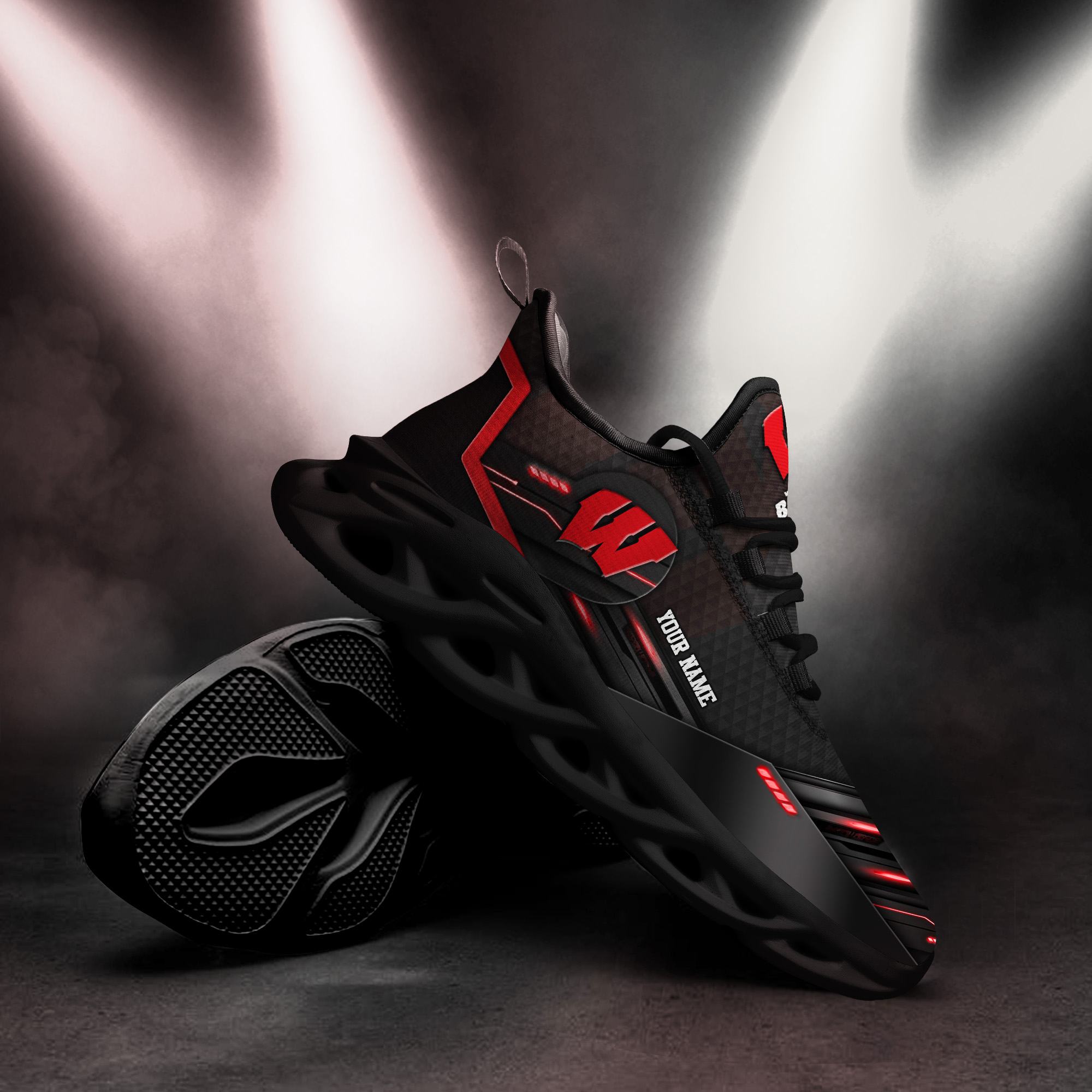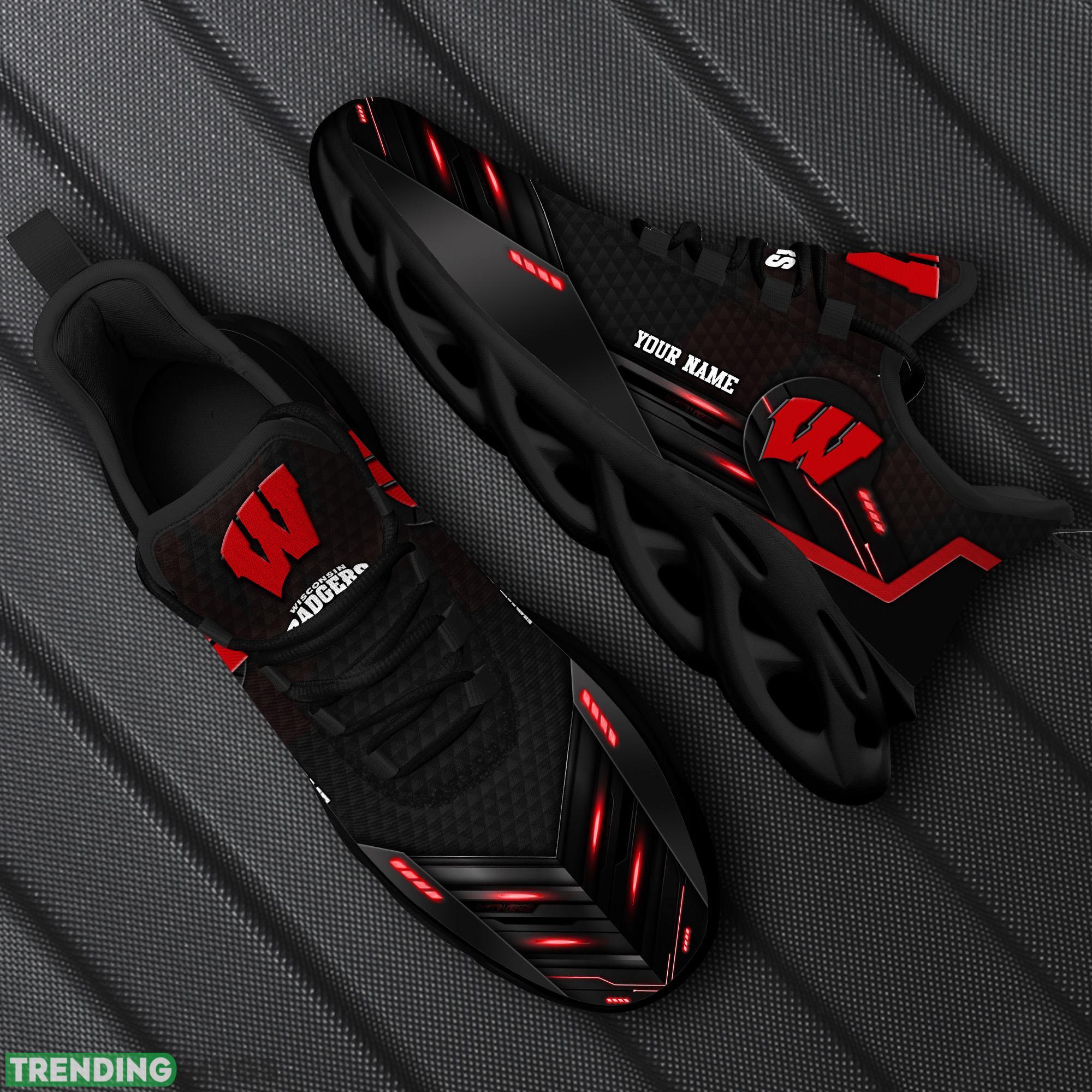 Custom Name Wisconsin Badgers Team Black Design Sports Sneakers Ideas For Men And Women Gift Max Soul Shoes information: