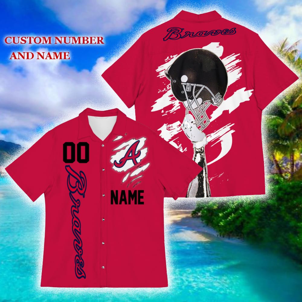Custom Number And Name Atlanta Braves Sports American Hawaiian Football Helmet New Trends For Fans Club Gifts 3D Hawaiian Shirt Aloha Beach Details: