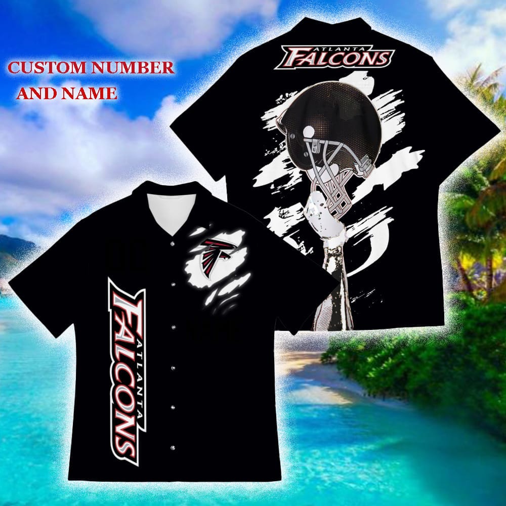 Custom Number And Name Atlanta Falcons Sports American Hawaiian Football Helmet New Trends For Fans Club Gifts 3D Hawaiian Shirt Aloha Beach Hawaiian Shirt