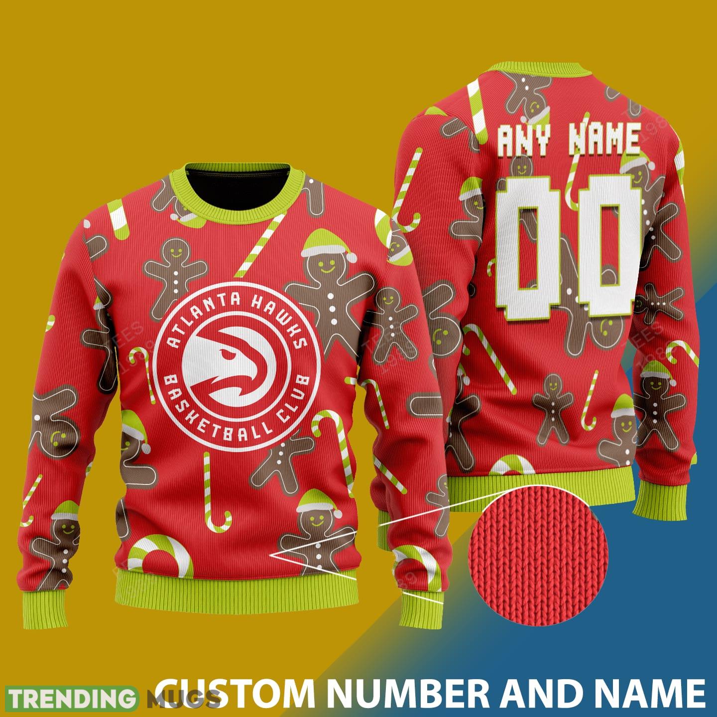 Featuring a jolly Santa bear wearing the iconic Atlanta Hawks jersey, this sweater combines the joy of Christmas with your passion for the team. The customizable number and name on the back add a personal touch, making it a truly unique and special gift for yourself or any Hawks fan in your life.