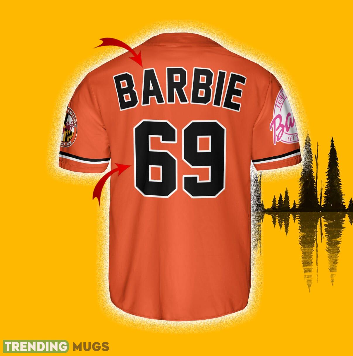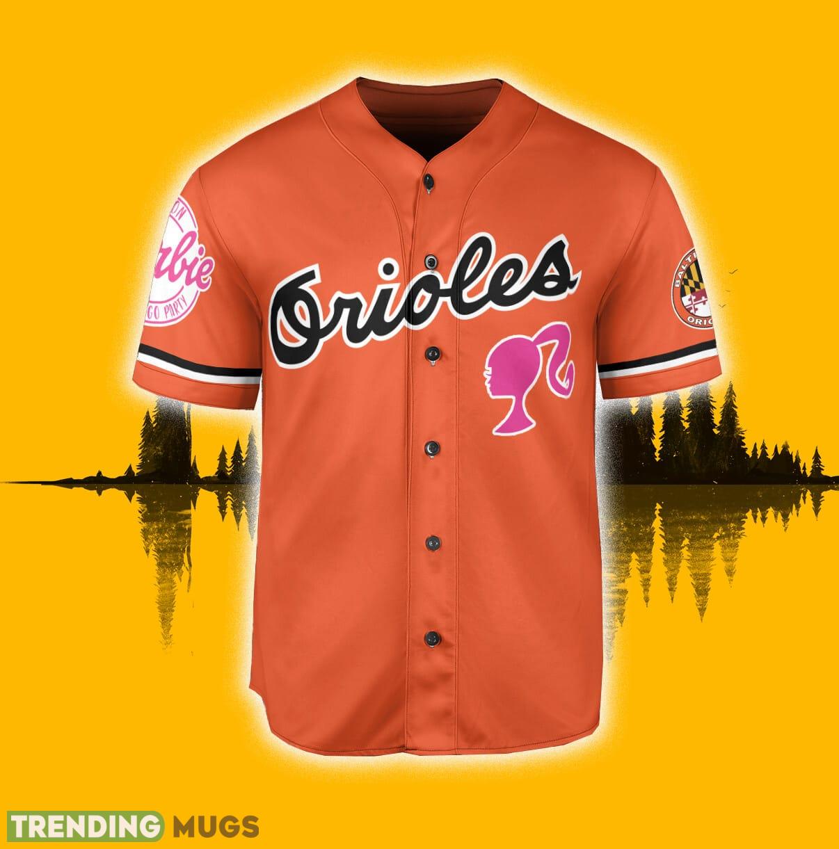 Made with high-quality materials, this jersey baseball shirt guarantees comfort and durability. The vibrant orange color adds a splash of energy to your outfit, making you the center of attention wherever you go. The Barbie-inspired design adds a touch of femininity and uniqueness to the classic Orioles jersey.