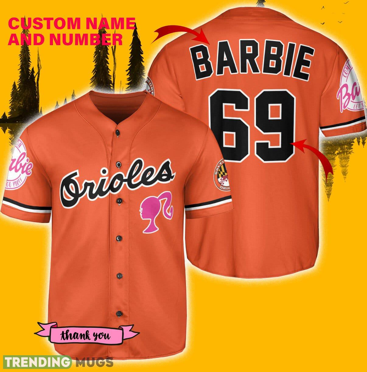 Whether you’re headed to the ballpark, hanging out with friends, or simply running errands around town, our Custom Number And Name Baltimore Orioles Barbie Orange Jersey Baseball Shirt is a must-have addition to your wardrobe. Grab yours today and show off your love for the Orioles in a truly unique and stylish way!
