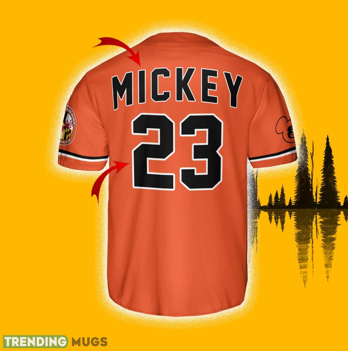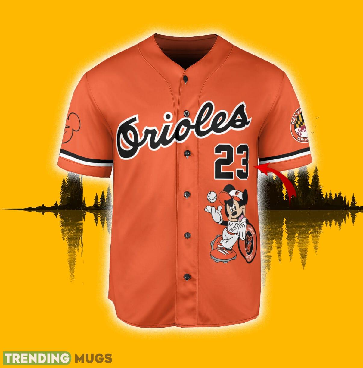 Some of the Custom Number And Name Baltimore Orioles Mickey Mouse x Baltimore Orioles Orange Jersey Baseball Shirt photos