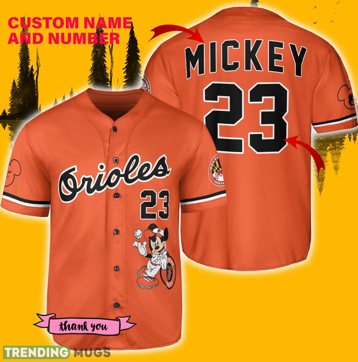 With its striking design and exceptional quality, the Custom Number And Name Baltimore Orioles Mickey Mouse x Baltimore Orioles Orange Jersey Baseball Shirt is a must-have for any true Orioles supporter. Show off your team spirit in a unique and playful way – order yours today and elevate your Orioles fandom to a whole new level!