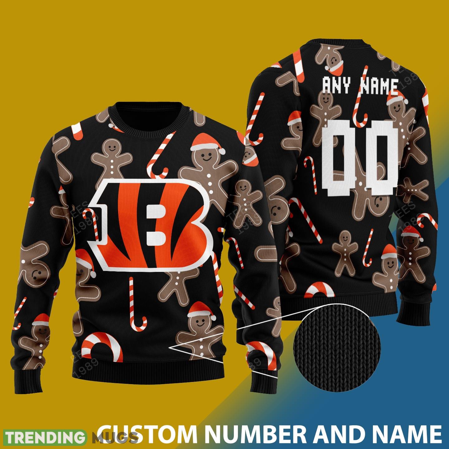 Featuring a delightful Santa bear wearing the iconic Bengals colors, this sweater is sure to catch everyone’s attention at any holiday gathering. The customizable number and name add a personalized touch, making it a unique and thoughtful gift for any Bengals fan.