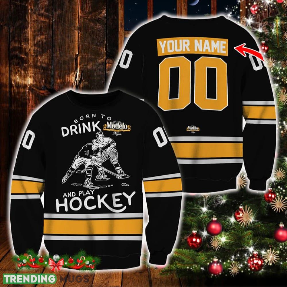 Custom Number And Name Born To Drink Modelo Negra and Play Hockey Sweater Beer Lovers Cold For Fans Gift – Custom Number And Name Born To Drink Modelo Negra and Play Hockey Sweater Beer Lovers Cold For Fans Gift