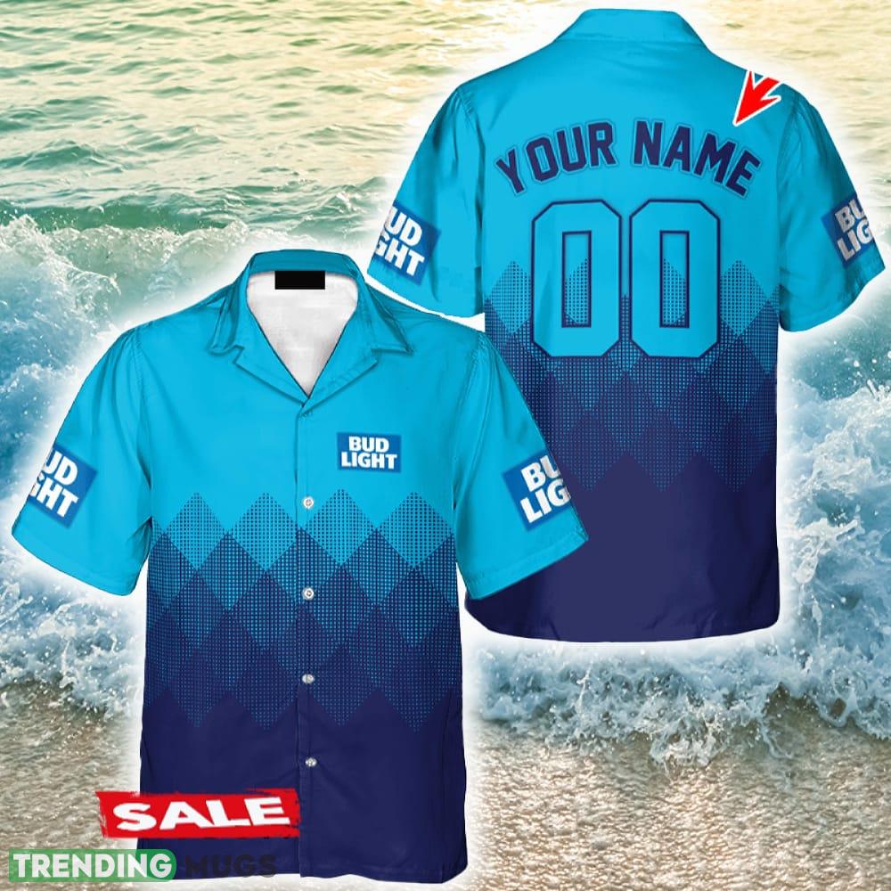 Custom Number And Name Bud Light Blue Halftone Hawaiian Shirt Beer Holidays Summer Details: