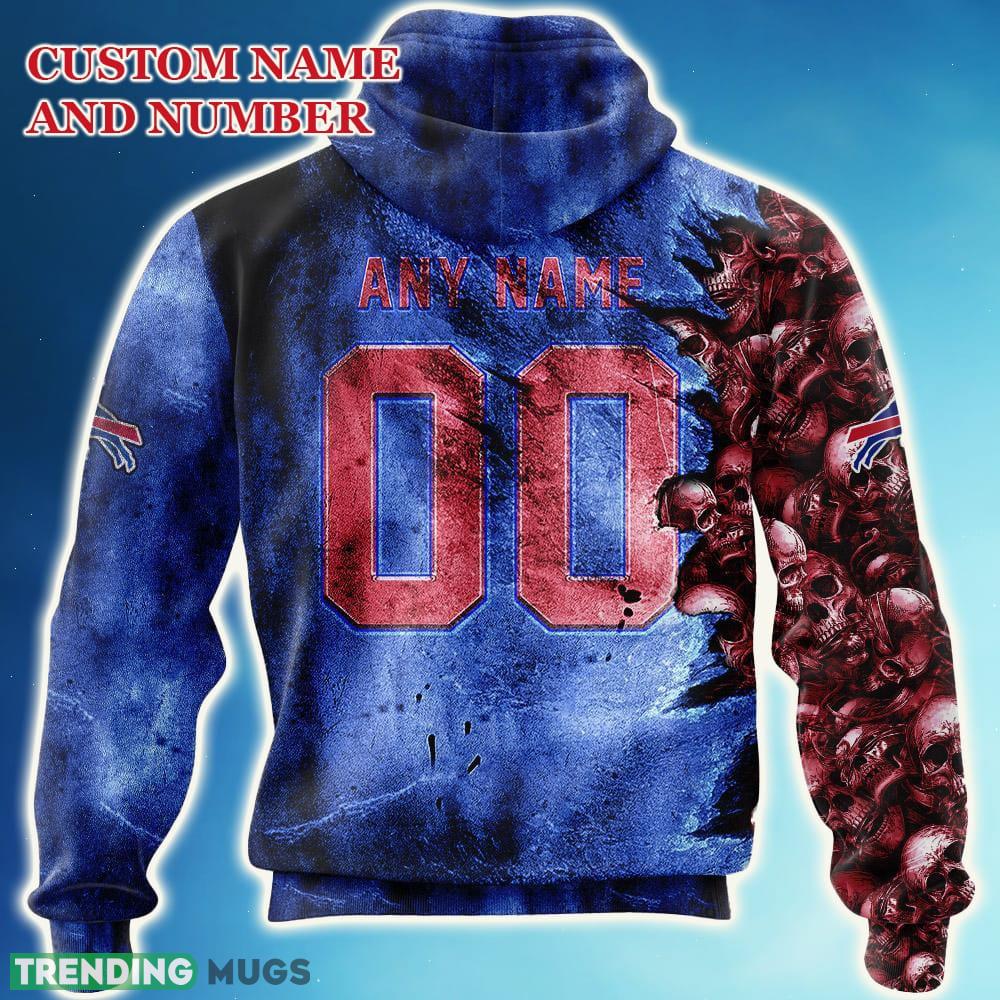 Custom Number And Name Buffalo Bills NFL Skull 3D Hoodie Zip Hoodie For Men And Women Christmas Gift Fans Information