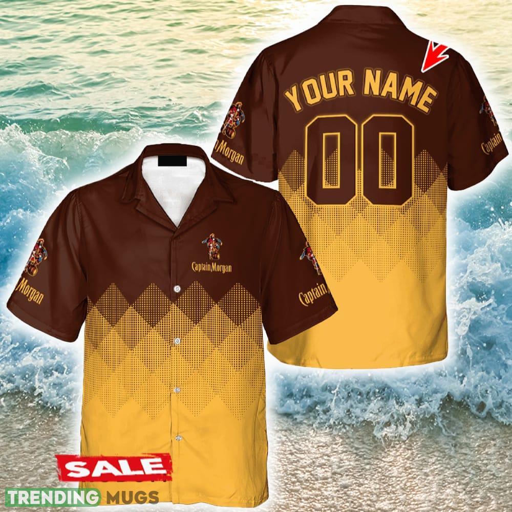 Custom Number And Name Captain Morgan Yellow And Brown Halftone Hawaiian Shirt Beer Holidays Summer