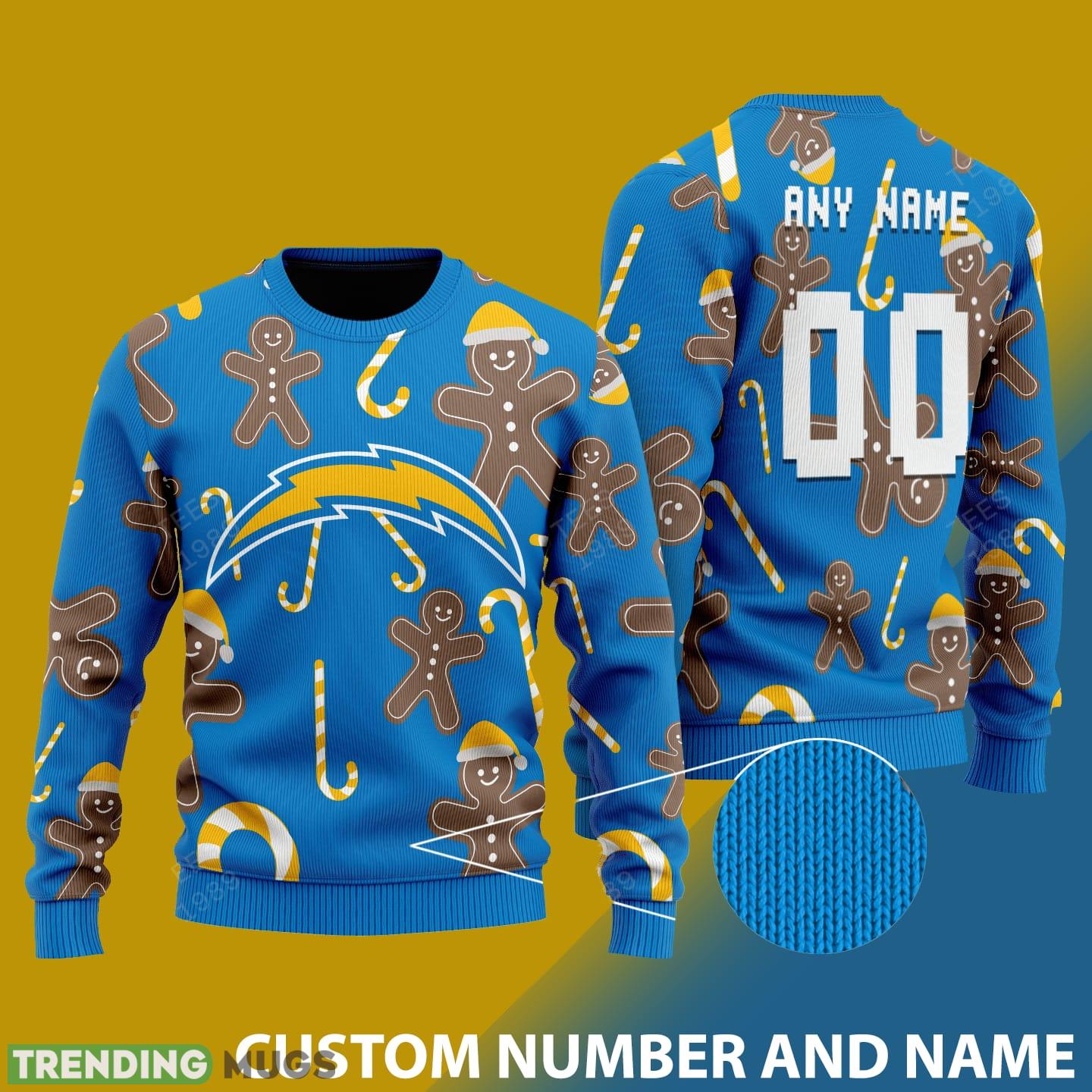 Order yours today and be the envy of all Chargers fans this holiday season. Spread cheer, support your team, and showcase your individuality with our Custom Number And Name Chargers Christmas Santa Bear Ugly Christmas Sweater.