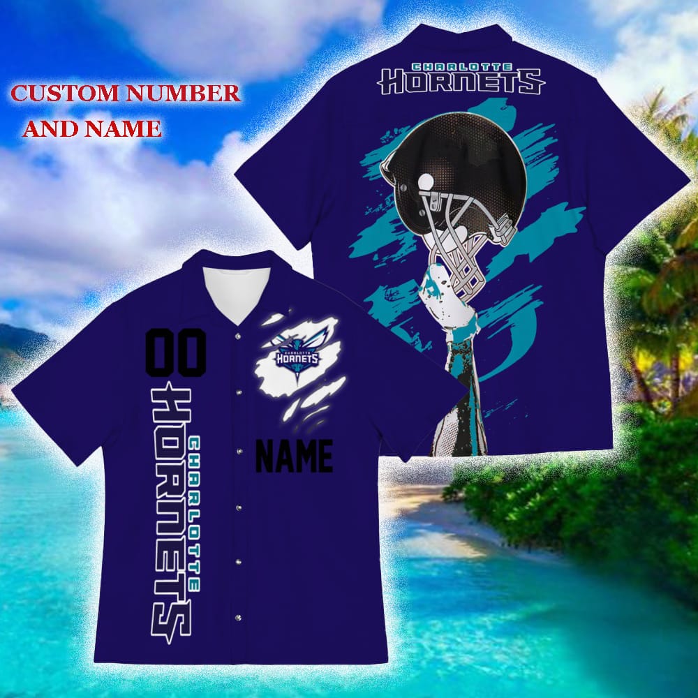 Get ready to show off your team spirit and make a bold fashion statement with our Custom Number And Name Charlotte Hornets Sports American Hawaiian Football Helmet New Trends For Fans Club Gifts 3D Hawaiian Shirt Aloha Beach!