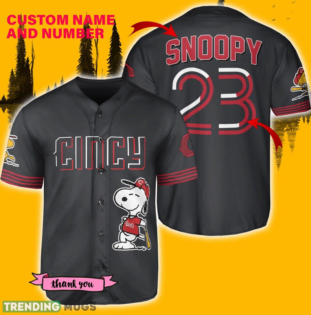 Custom Number And Name Cincinnati Reds Peanuts Snoopy BL Jersey Baseball Shirt Information: