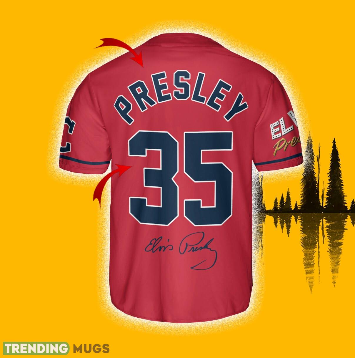 Whether you’re hitting the field, attending a game, or simply want to sport a unique and eye-catching look, our Custom Number and Name Cleveland Guardians Elvis Presley Red Jersey Baseball Shirt is the perfect choice. So, grab yours today and let your love for baseball and Elvis shine!