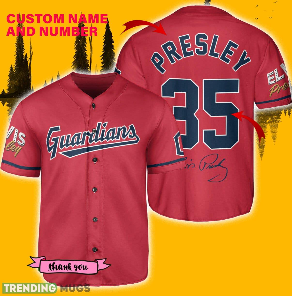 Custom Number And Name Cleveland Guardians Elvis Presley Red Jersey Baseball Shirt Information: