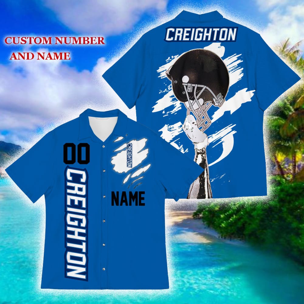 Custom Number And Name Creighton Bluejays Sports American Hawaiian Football Helmet New Trends For Fans Club Gifts 3D Hawaiian Shirt Aloha Beach Details:
