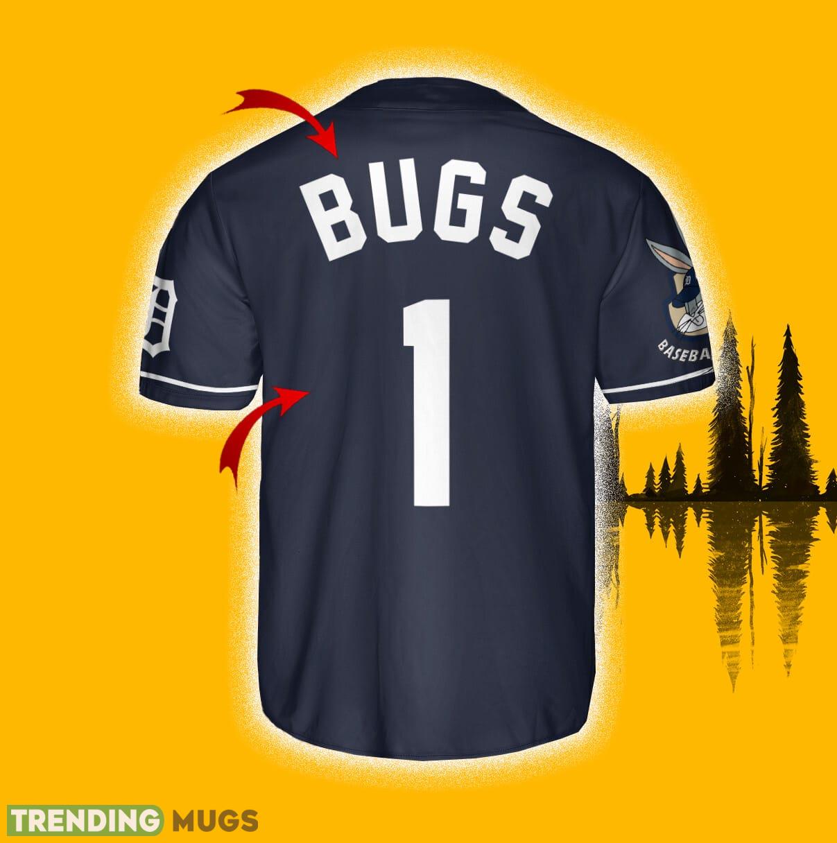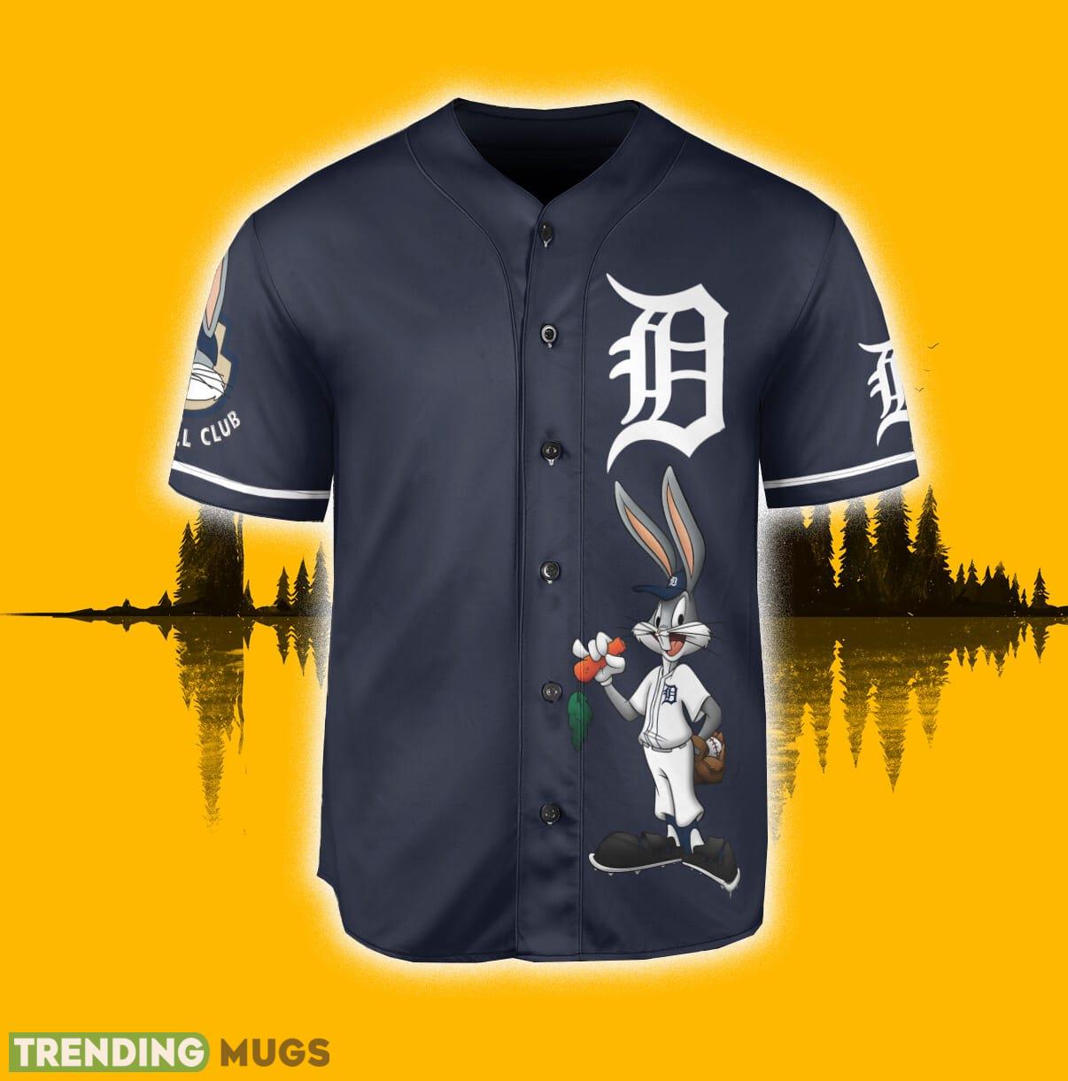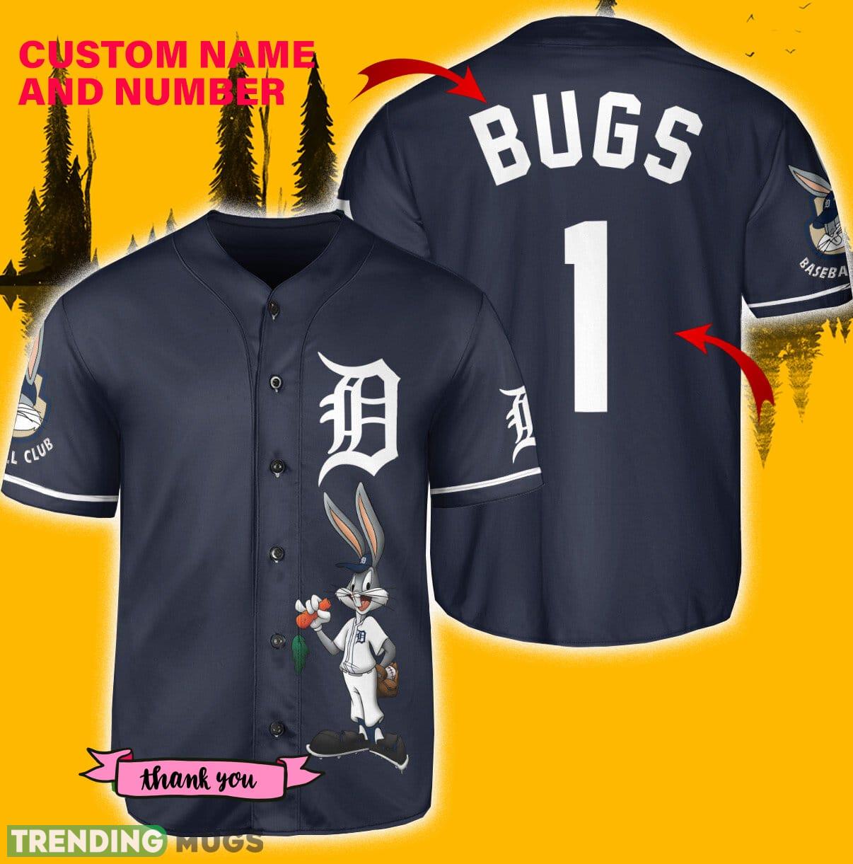 Custom Number And Name Detroit Tigers Looney Tunes Bugs Bunny Navy Jersey Baseball Shirt Information: