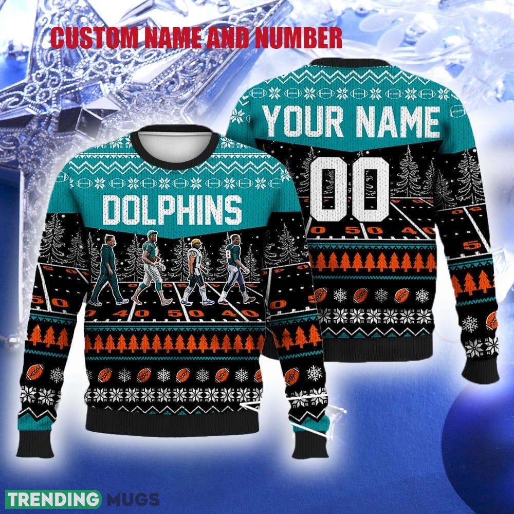 Custom Number And Name Dolphins Walking Abbey Road Ugly Christmas Sweater Football Fans Gift Familys – Custom Number And Name Dolphins Walking Abbey Road Ugly Christmas Sweater Football Fans Gift Familys