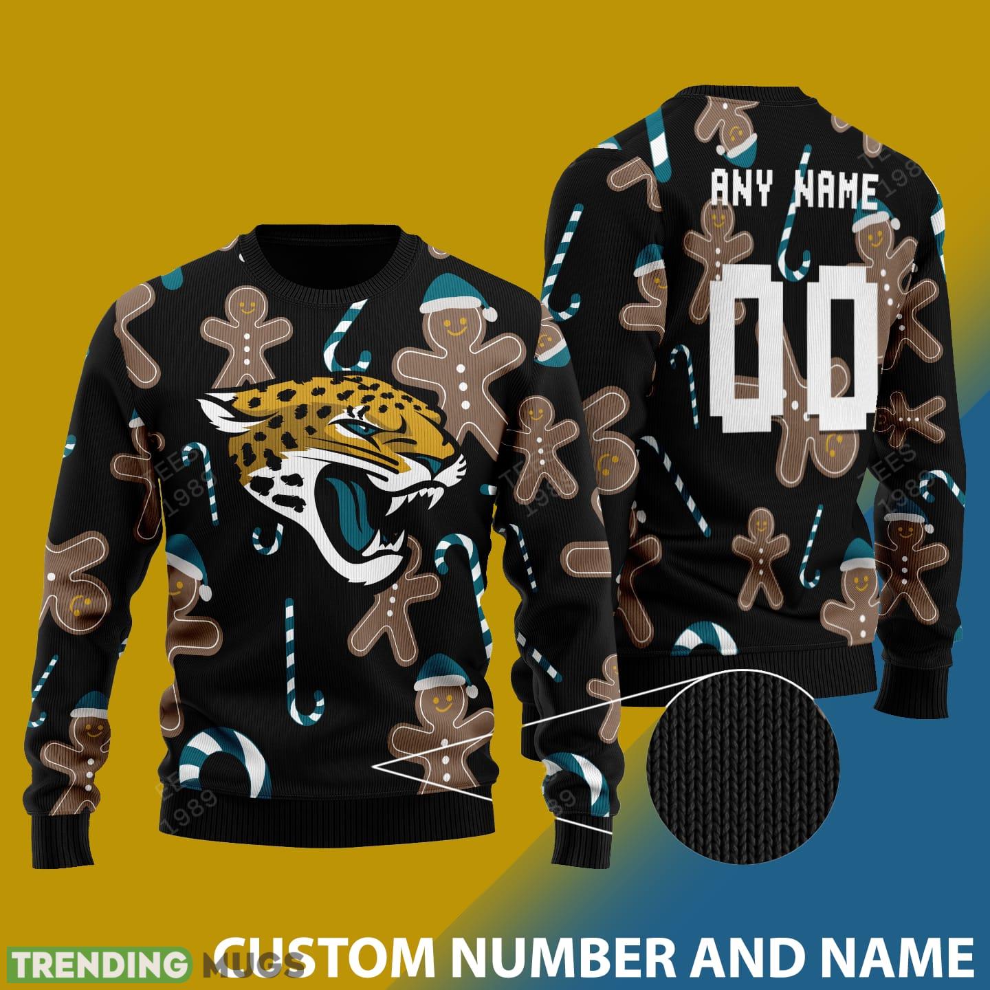 Crafted with love and attention to detail, this sweater features a jolly Santa bear donning the iconic Jaguars colors and logo. But that’s not all – you can personalize it with your very own number and name, making it a truly one-of-a-kind addition to your wardrobe.