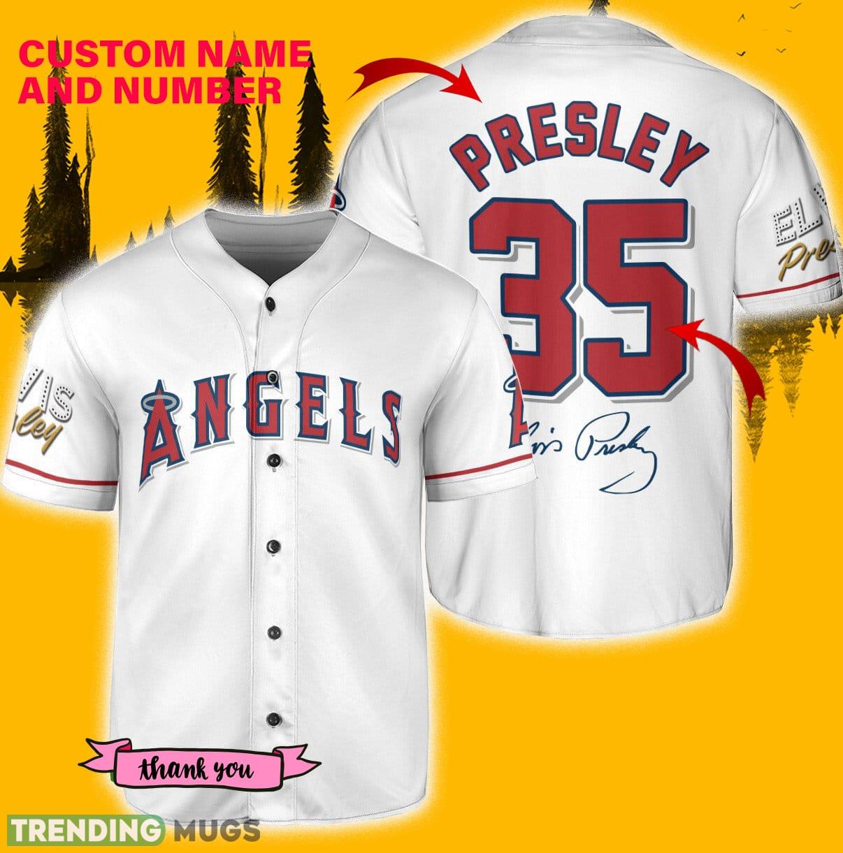 Not only is this jersey shirt a great addition to your own collection, but it also makes for a fantastic gift for any die-hard Angels or Elvis fan in your life. Show off your team spirit and pay tribute to the King with our Custom Number And Name Los Angeles Angels Elvis Presley White Jersey Baseball Shirt. Order yours now and let your fandom shine!