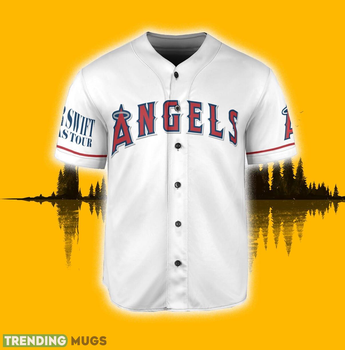 Get ready to show off your love for the Los Angeles Angels and Taylor Swift with our Custom Number And Name Los Angeles Angels Taylor Swift White Jersey Baseball Shirt. This trendy and eye-catching shirt is the perfect addition to your wardrobe, whether you’re headed to a baseball game or just want to showcase your fandom.