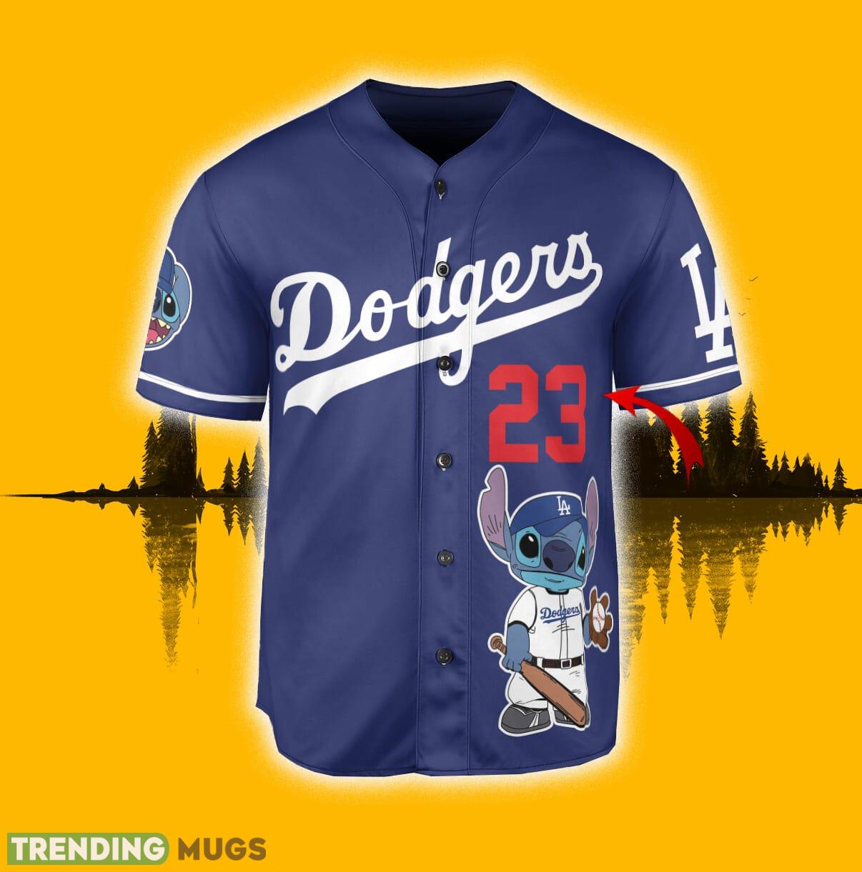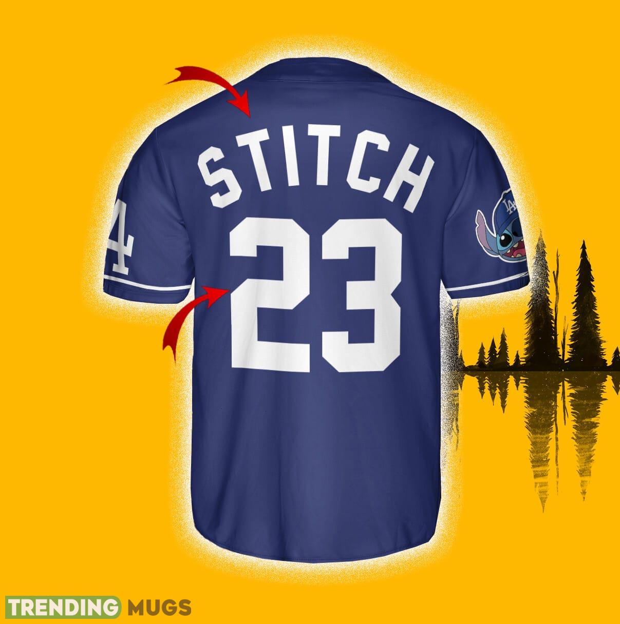 The Lilo & Stitch design adds a touch of fun and individuality to this classic jersey shirt. It brings a playful twist to the traditional Dodgers apparel, making it perfect for fans of all ages.