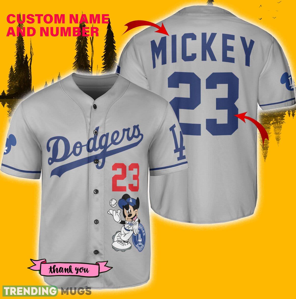 Custom Number And Name Los Angeles Dodgers Mickey Gray Jersey Baseball Shirt – Los Angeles Dodgers Mickey Gray Baseball Jersey_1