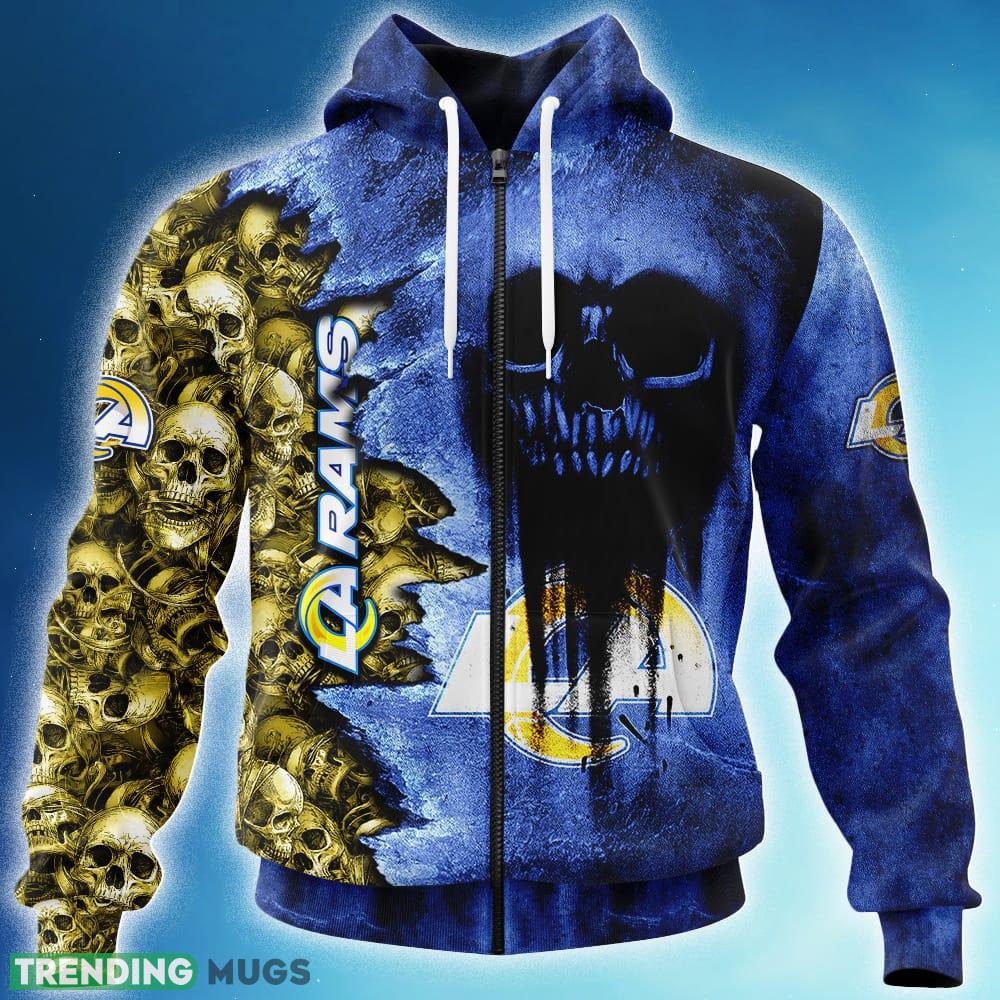 Stay warm and stylish this winter season with our Custom Number And Name Los Angeles Rams NFL Skull 3D Hoodie Zip Hoodie! Designed for both men and women, this hoodie is the perfect Christmas gift for fans of the Los Angeles Rams.