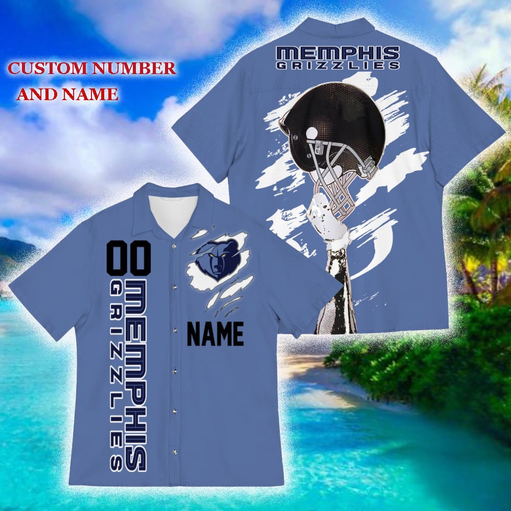 Don’t miss out on this opportunity to showcase your dedication to the Memphis Grizzlies in a unique and fashionable way. Order your Custom Number And Name Memphis Grizzlies Sports American Hawaiian Football Helmet New Trends For Fans Club Gifts 3D Hawaiian Shirt Aloha Beach today and let your Grizzlies pride shine!