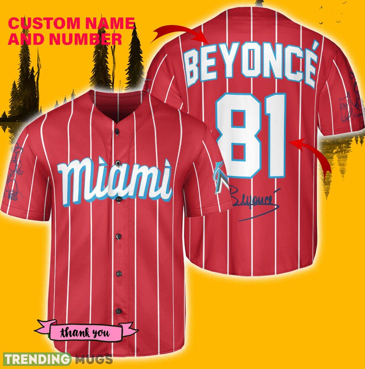 Custom Number And Name Miami Marlins Beyonce Red Jersey Baseball Shirt Information: