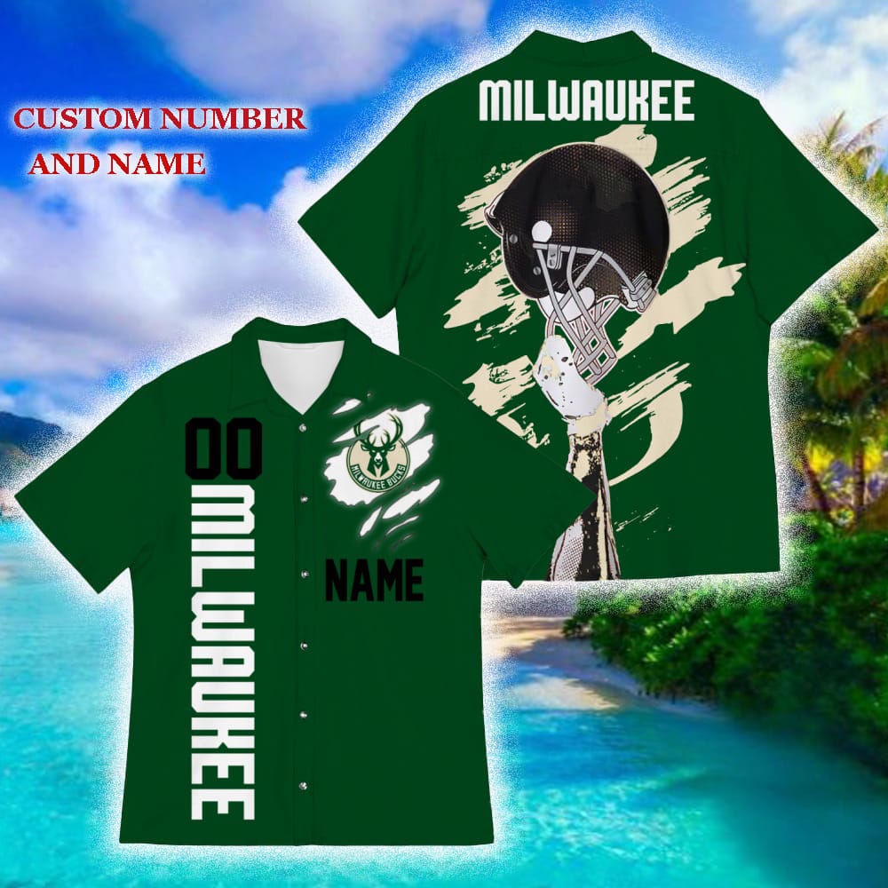 Some of the Custom Number And Name Milwaukee Bucks Sports American Hawaiian Football Helmet New Trends For Fans Club Gifts 3D Hawaiian Shirt Aloha Beach photos