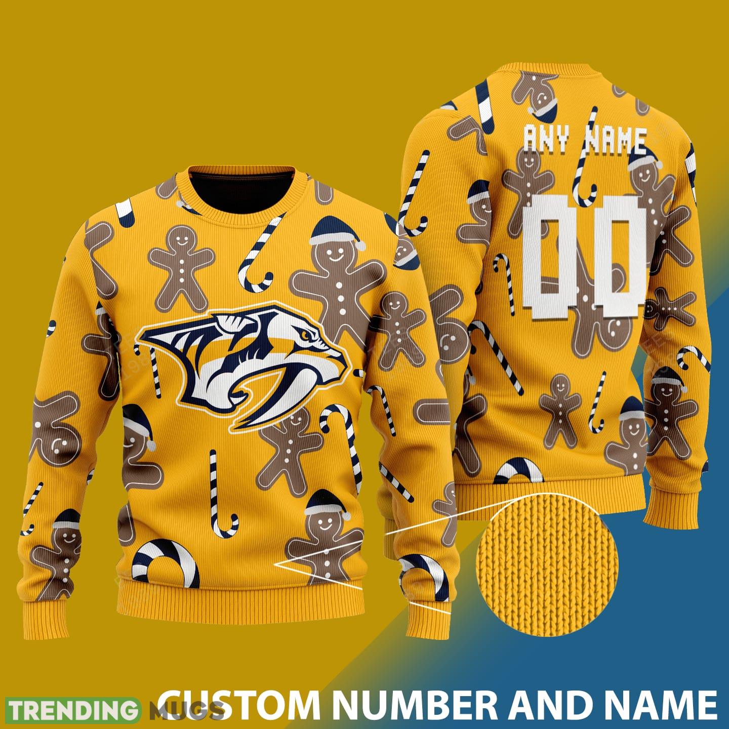 Whether you’re attending an ugly Christmas sweater party, cheering on the Nashville Predators during the holiday season, or simply want to showcase your unique style, our Custom Number And Name Nashville Predators Christmas Santa Bear Ugly Christmas Sweater is a must-have. Spread joy, celebrate the holidays, and support your favorite team in style with this one-of-a-kind sweater. Order yours today and be the envy of all Predators fans!