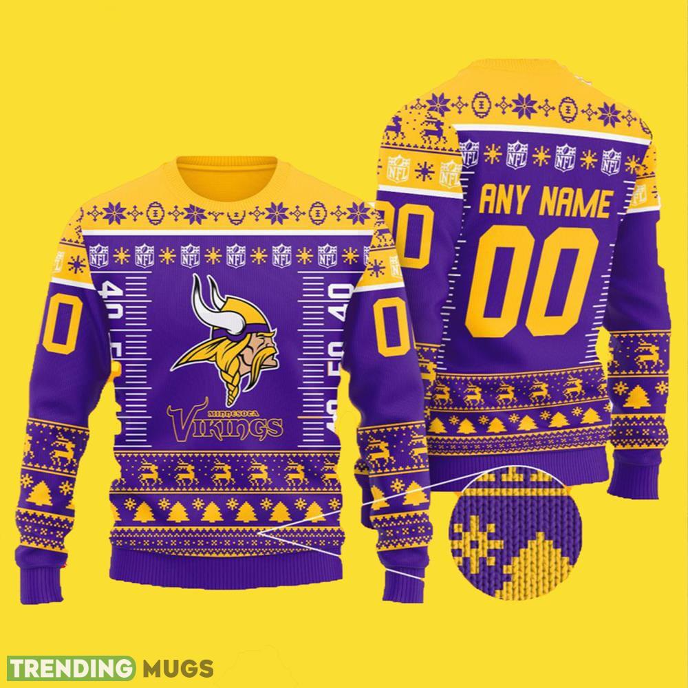 Custom Number And Name NFL Logo Minnesota Vikings Ugly Christmas Sweater Gift For Men And Women – Custom Number And Name NFL Logo Minnesota Vikings Ugly Christmas Sweater Gift For Men And Women