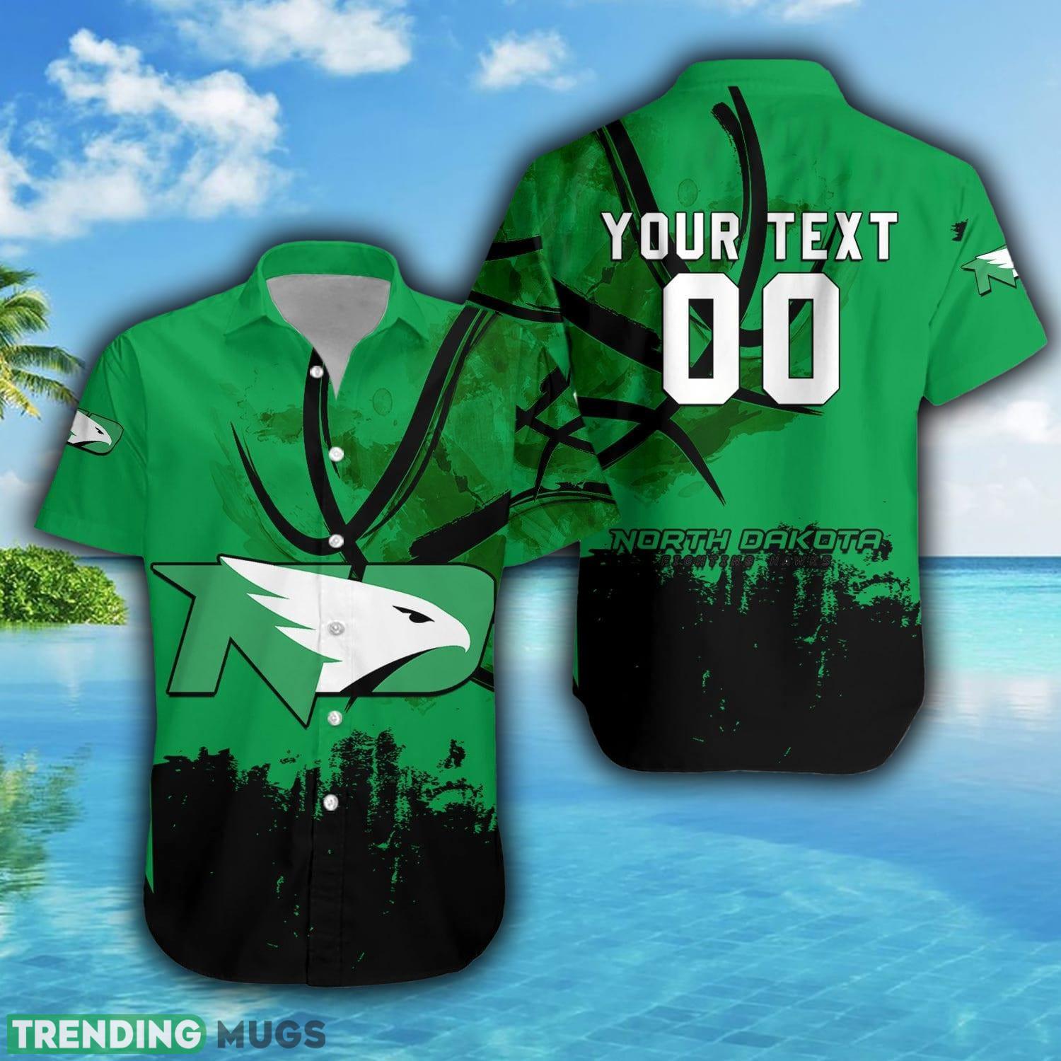 Embrace your love for the North Dakota Fighting Hawks and order your Custom Number And Name Hawaiian Shirt today!