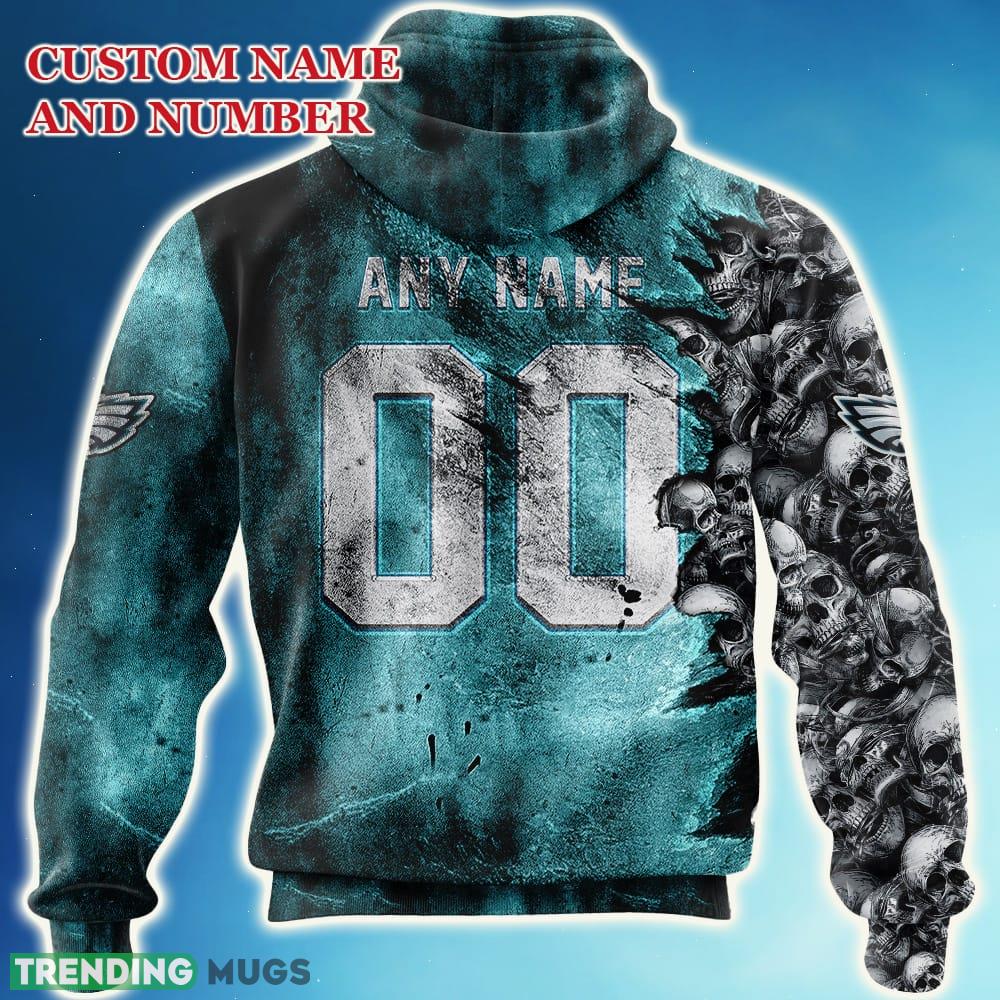 Custom Number And Name Philadelphia Eagles NFL Skull 3D Hoodie Zip Hoodie For Men And Women Christmas Gift Fans Information