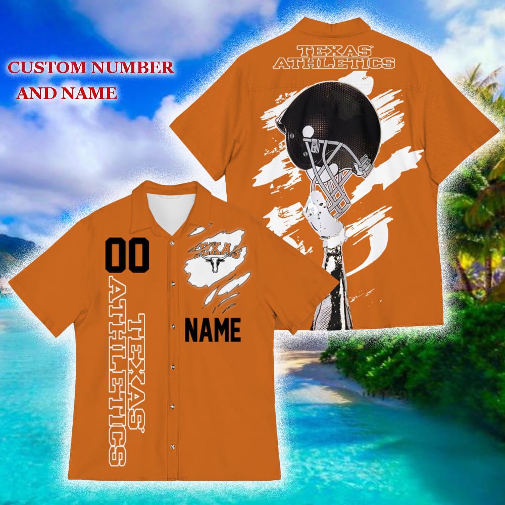 Custom Number And Name Texas Longhorns Sports American Hawaiian Football Helmet New Trends For Fans Club Gifts 3D Hawaiian Shirt Aloha Beach Details: