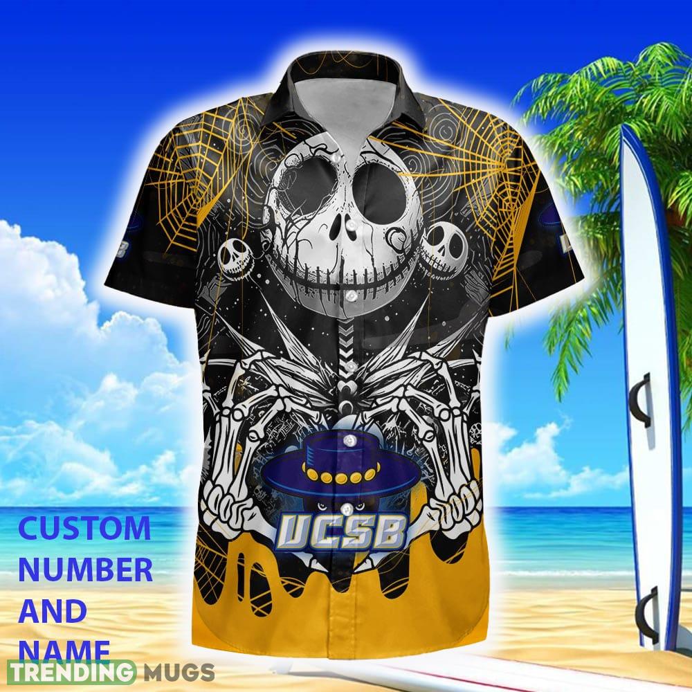 Custom Number And Name UC Santa Barbara Gauchos Jack Skellington Hawaiian Shirt Halloween Beach For Men And Women Gift – Custome Number And Name Santa Barbara Gahos Jack Skellington SurfHalloween Hawaiian Shirt For Men And Women Gift