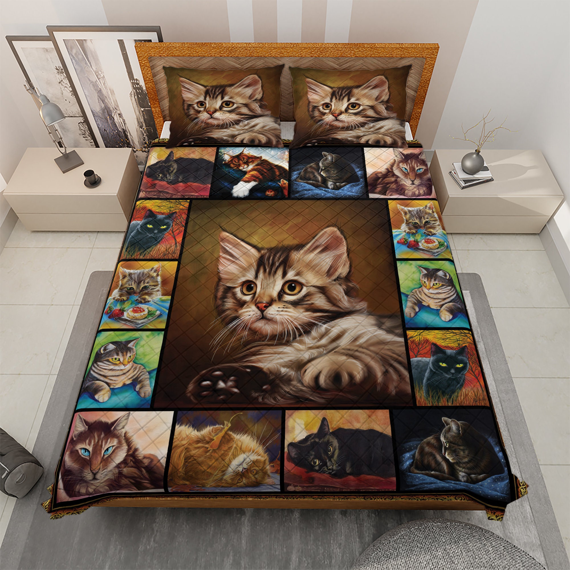 Add a touch of whimsy and charm to your bedroom with our delightful Cute Cat Collection Quilt Bedding Set. Featuring an array of adorable kitties in various poses, this quilt blanket is sure to bring a smile to your face every time you enter your room.