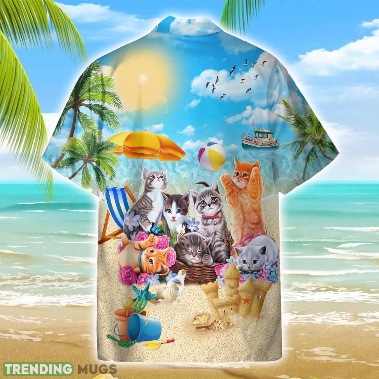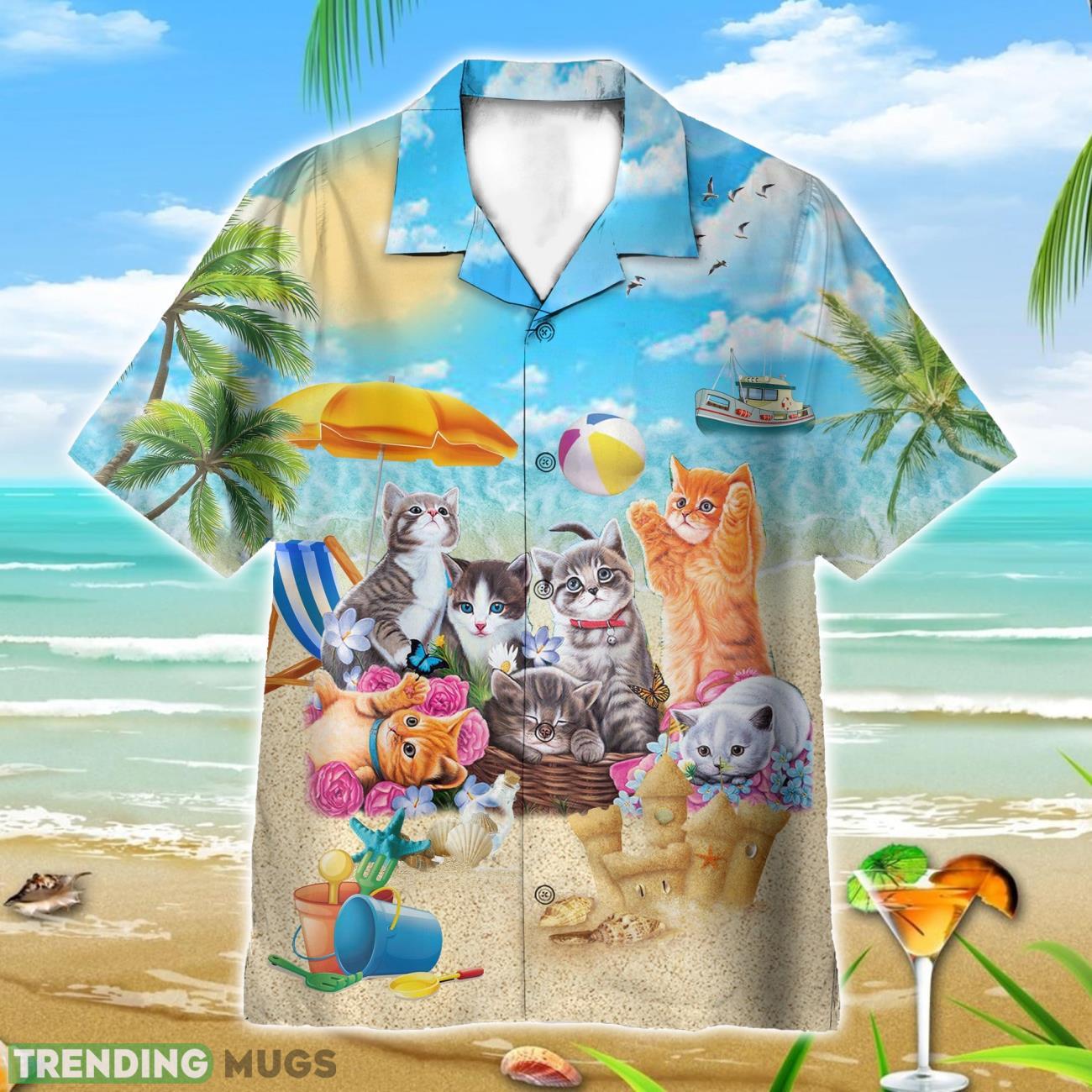 Cute Cats On The Summer Beach 3D Hawaiian Shirt Summer Vaction Gift Details: