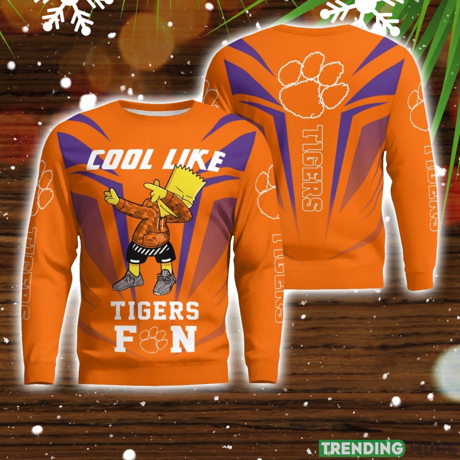 Are you a proud Clemson Tigers fan who loves to showcase your team spirit in a unique and trendy way? Look no further than our amazing “Cute Cool Like Clemson Tigers Fan Bart Simpson Dab Ugly Christmas Sweater”!