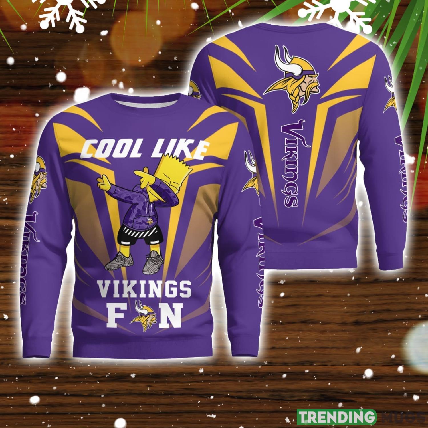 Don’t miss out on the opportunity to stand out from the crowd this holiday season. Order your Cute Cool Like Minnesota Vikings Fan Bart Simpson Dab Ugly Christmas Sweater now and let your inner fan and fashionista shine!