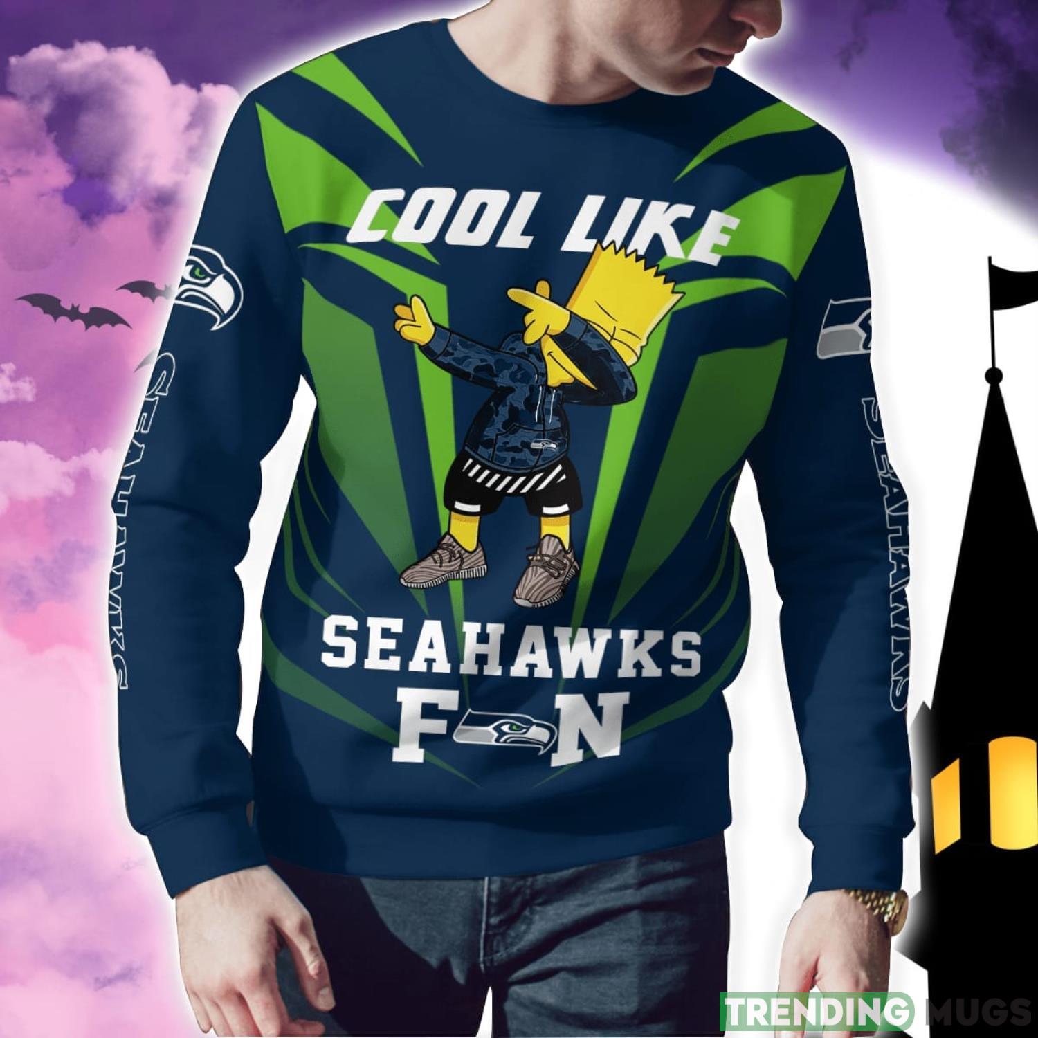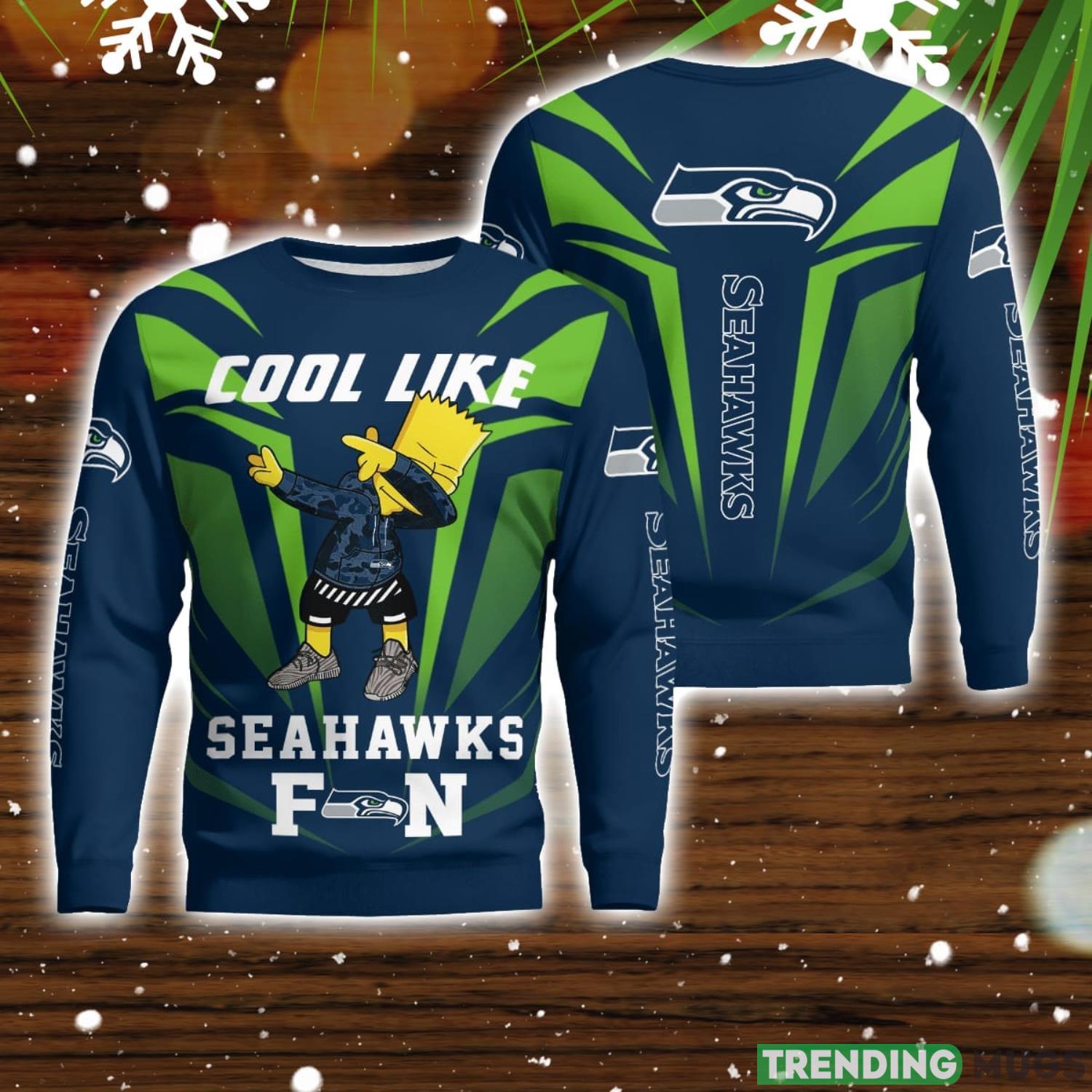 Get ready to show off your team spirit and celebrate the holiday season in style with our Cute Cool Like Seattle Seahawks Fan Bart Simpson Dab Ugly Christmas Sweater!