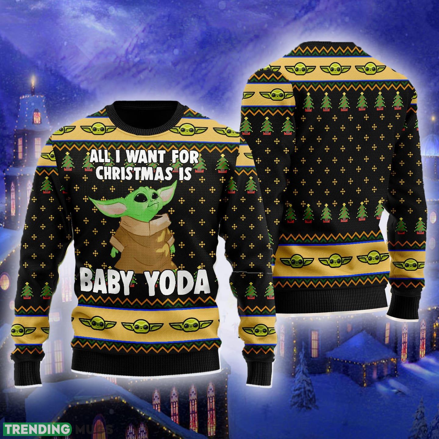 “All I Want For Is Baby” is boldly displayed across the front, adding a touch of humor and cuteness to your outfit. The eye-catching alien design adds a fun and quirky twist to the traditional Christmas sweater, making it a unique choice for those who want to make a statement.