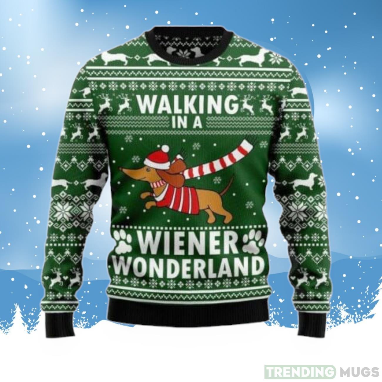 Dachshund Dog Walking In A Wiener Wonderland Ugly Christmas Sweater For Men & Women Informations: