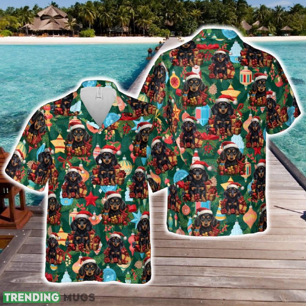 Dachshund Wearing Santa Hat Christmas Hawaiian Shirt Gift For Holidays Beach – Dachshund Wearing Santa Hat Christmas Hawaiian Shirt Gift For Holidays Beach